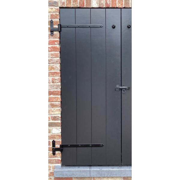 Met deze complete set luikbeslag is het ophangen van 1 luik op de muur een makkelijke klus. Er komt hierdoor 1 luik links van het kozijn te hangen. De lengte van het staartgeheng is 400mm.