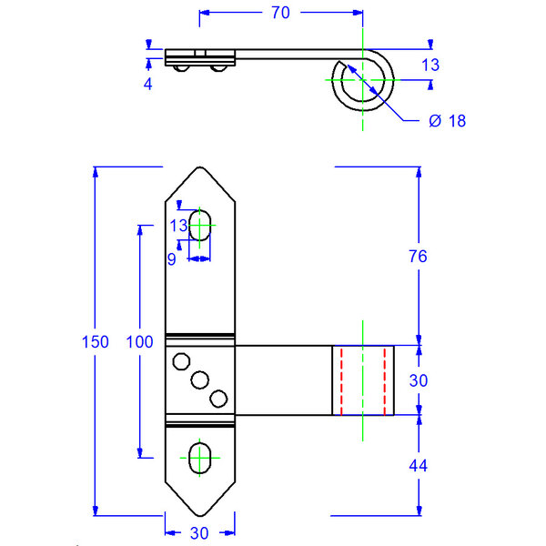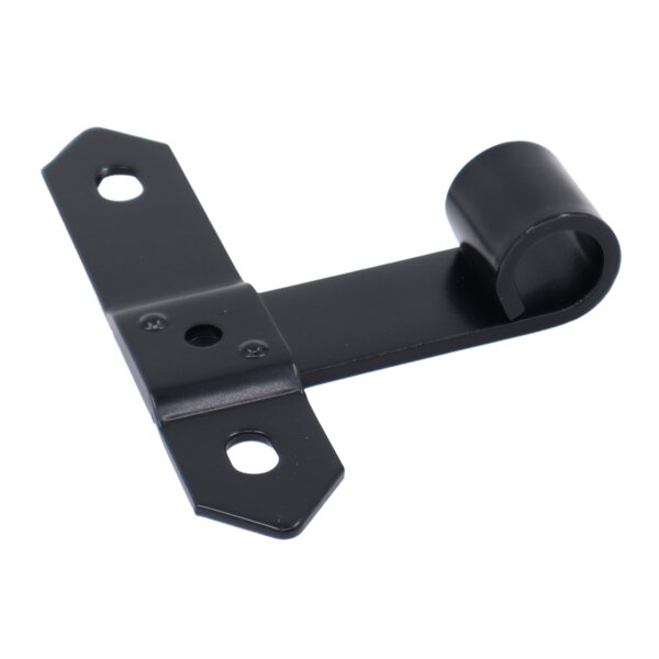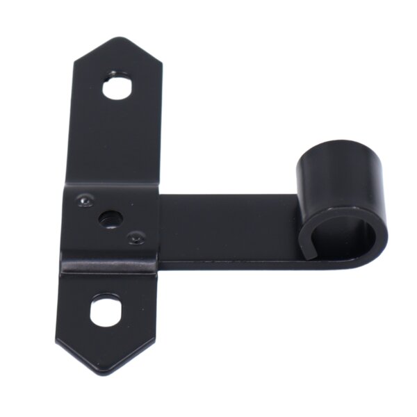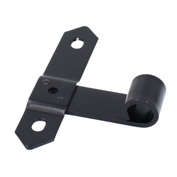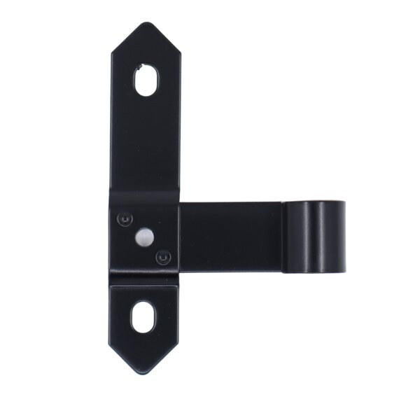 Verstelbare plaatduim (links) om luiken mooi aan de gevel te kunnen hangen. Verzinkt staal voorzien van duurzaam zwarte poedercoating.